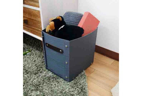 【素材】PP, ニッケル,ステンレス,合皮【本体サイズ】約W19×D25×H24cm【耐荷重】約10kg「折りたためる家具」をコンセプトに癒しを感じる木目を気軽に組み立てて使う事ができる、新しい形を提案する収納ボックス。